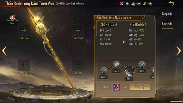 - Lối vào tính năng: Tướng - Chi tiết Tướng - Thần Binh - Binh Hồn