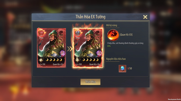 - Thần tướng tư chất 18 và 20 sau khi hoàn thành Niết Bàn cũng có thể tiến hành EX Thần Hóa để nhận kỹ năng EX
