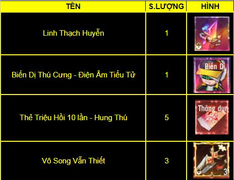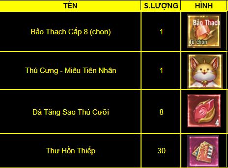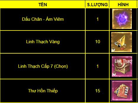 => Mỗi Thợ Săn chỉ nhận được 1 mốc quà