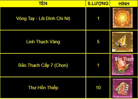 Thợ Săn đạt tổng tích luỹ nạp trong thời gian sự kiện là 200000 OnG sẽ nhận được thưởng mốc 4
